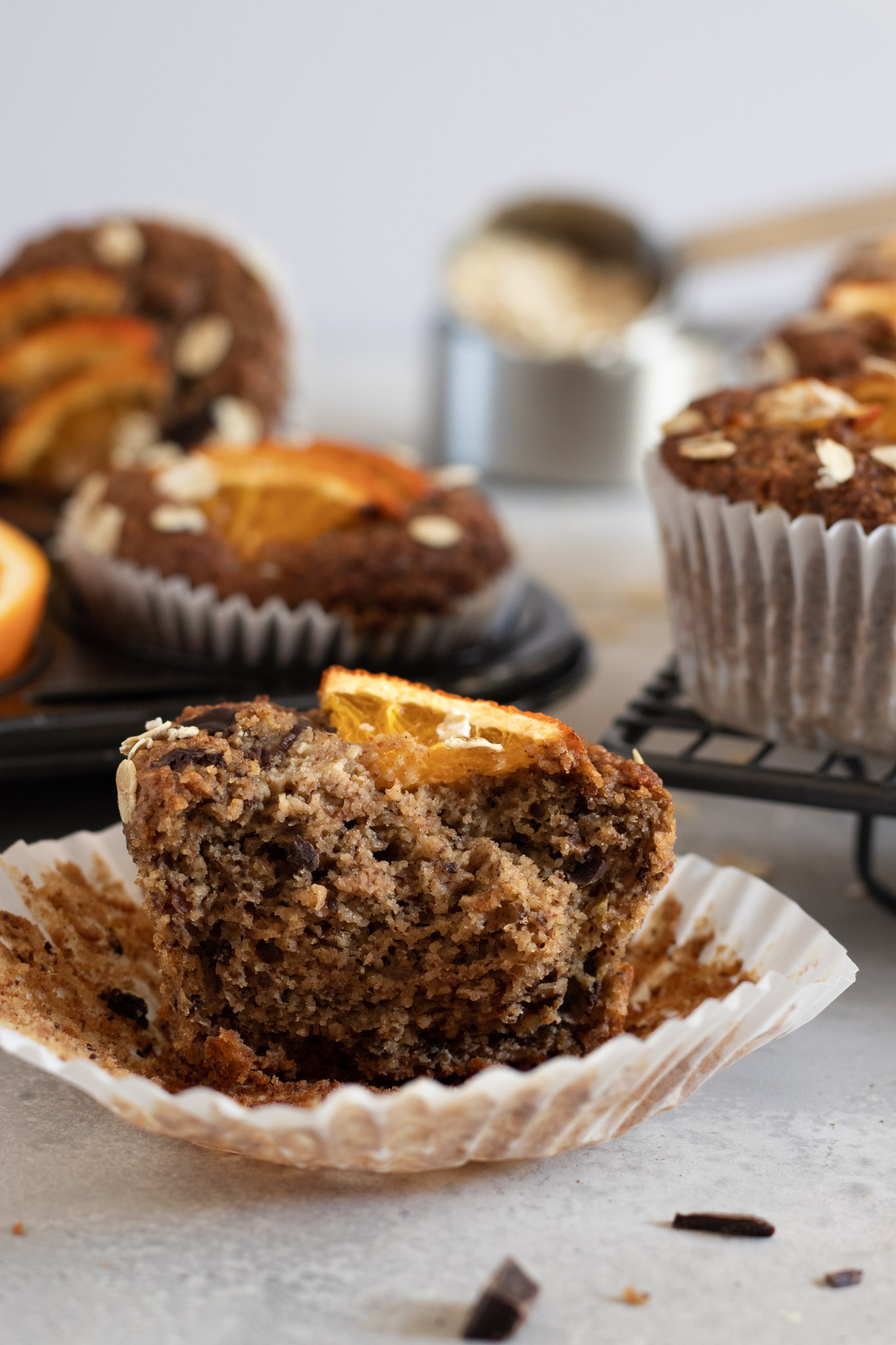 These Chocolate Orange Spice Muffins are not your average muffin, they are light and fluffy and made with healthier ingredients than most. Filled with chocolate pieces, orange zest and warming spices they make the perfect snack to have with coffee or tea!